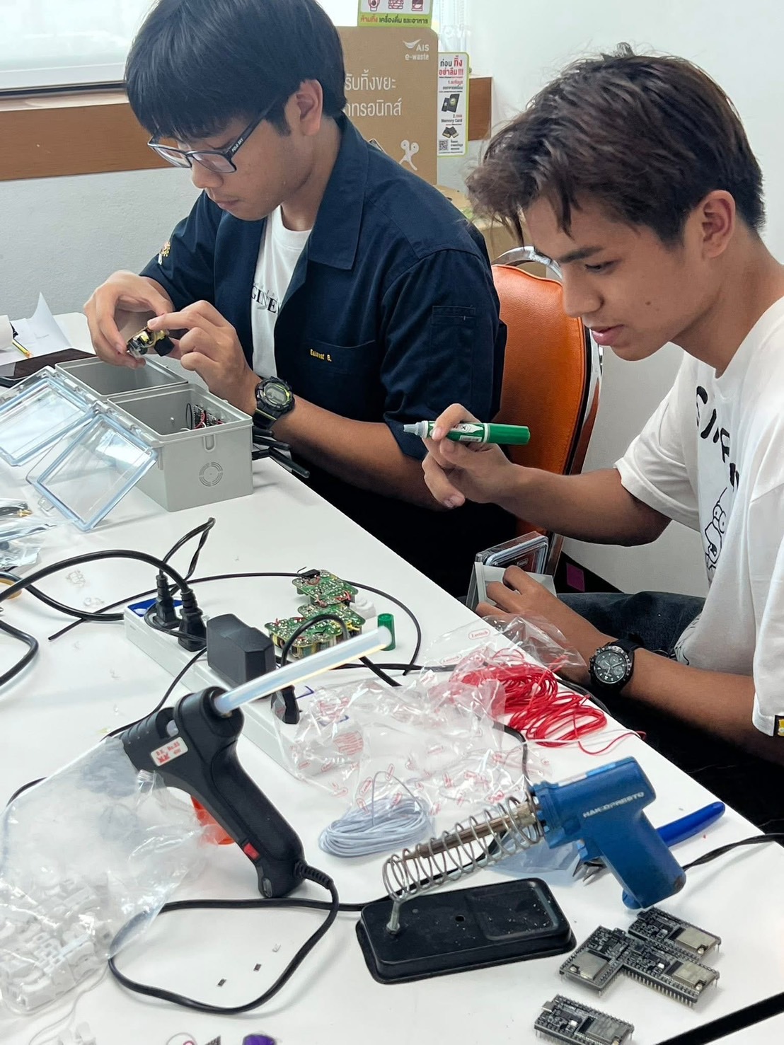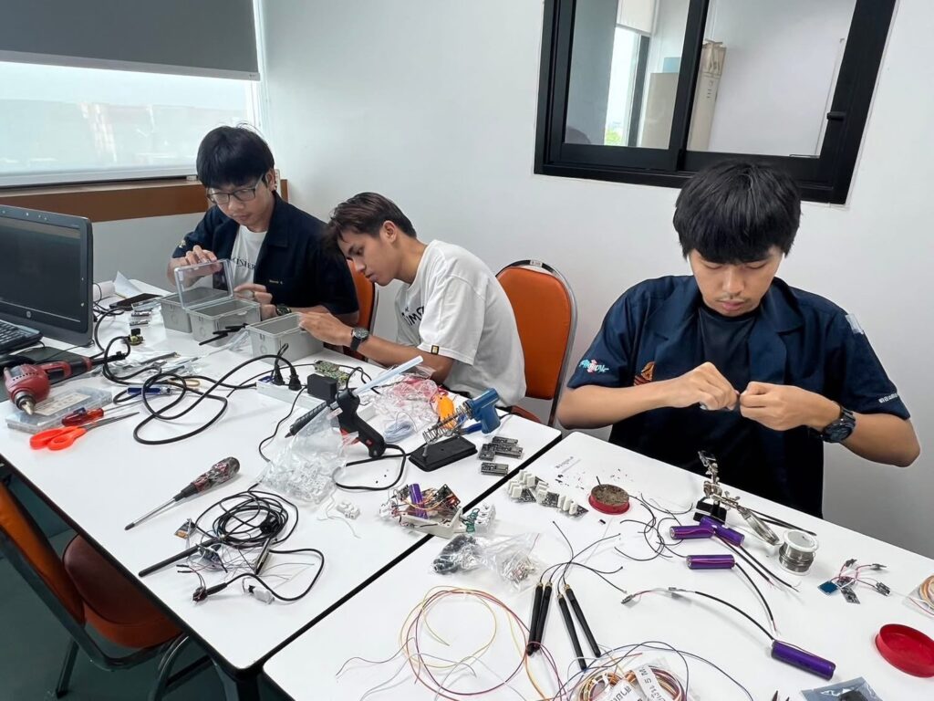🔧 อุปกรณ์ต้นแบบที่กำลังเกิดขึ้นจากมือของนักศึกษา ได้แก่
