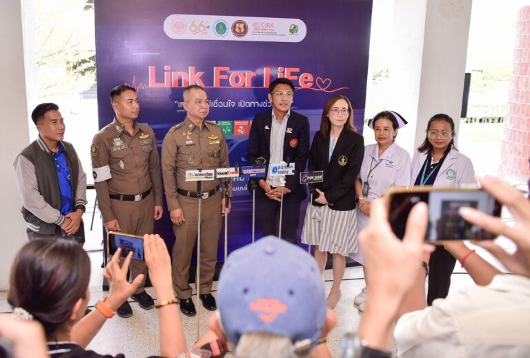 สจล. จัดงานแถลงข่าว “Link for Life: เทคโนโลยีเชื่อมใจ เปิดทางช่วยชีวิต” เมื่อวันที่ 17 ตุลาคม 2568 ณ โรงอาหารสมเด็จพระเทพรัตนฯ นำโดย รศ.ดร.คมสัน มาลีสี อธิการบดี และคณะผู้บริหาร ร่วมเปิดตัวเทคโนโลยีเชื่อมต่อข้อมูลการแพทย์ฉุกเฉินแบบ real time