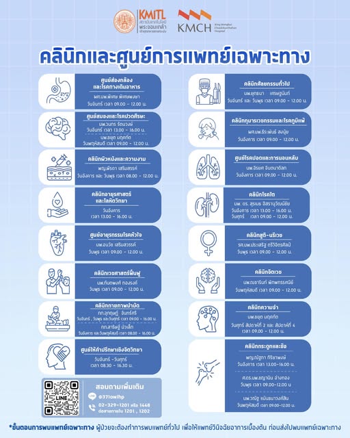 🏥 Consultation place: King Mongkut Chaokhunthahan Hospital (KMCH) , 1st floor.