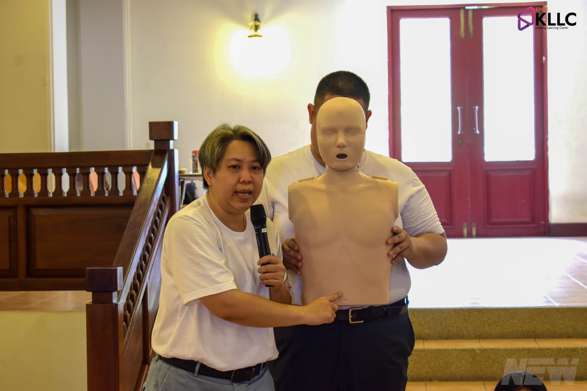 Led by Asst. Prof. Dr. Patcharaporn Suntornwiboon, Vice Dean of the Faculty of Liberal Arts, the kids were introduced to essential CPR and basic first aid techniques.